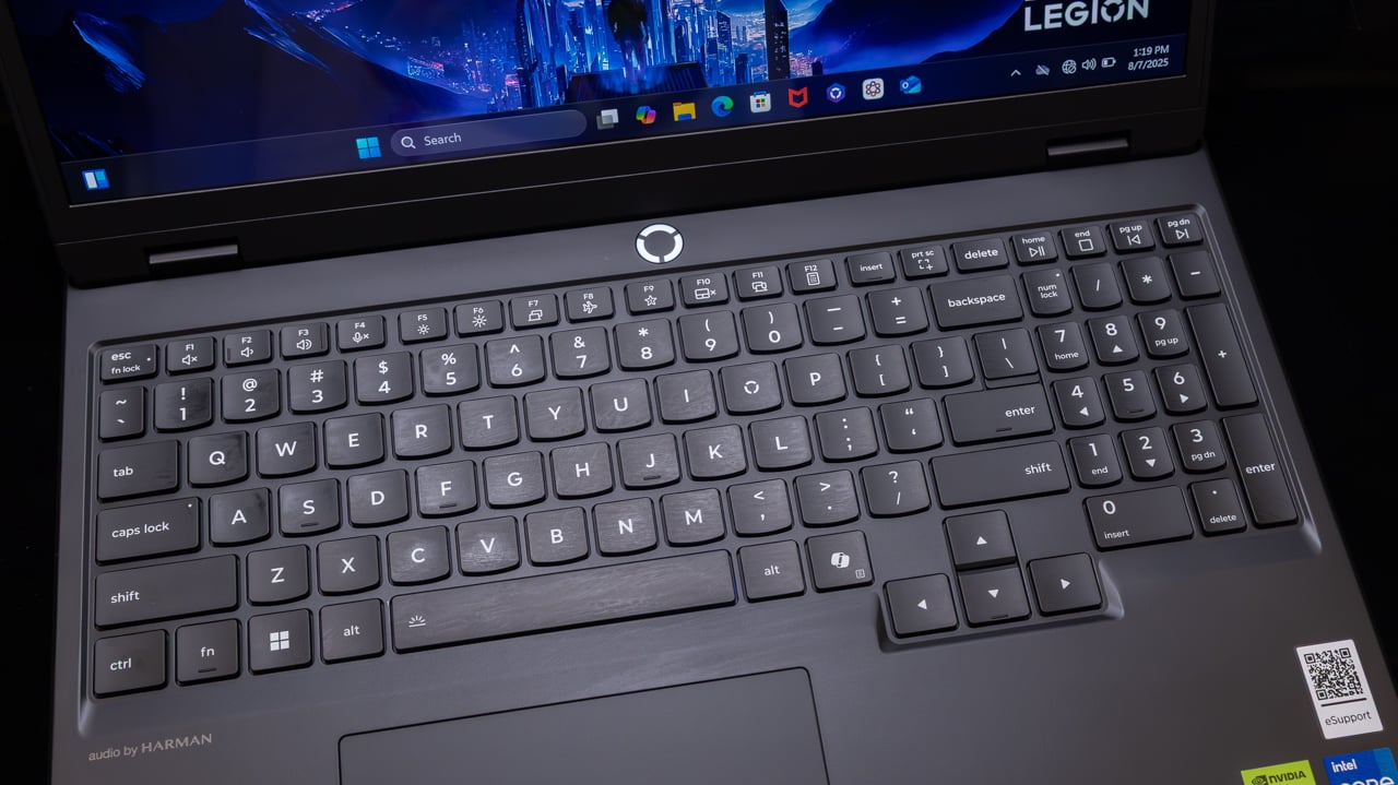 在日常使用中,我发现 Legion 5i 无论是办公还是游戏,都是可靠的伙伴。它的散热系统能将机身表面温度控制在舒适的范围内,即使在玩游戏时,风扇噪音也几乎可以忽略不计。真正吸引我的是那块惊艳的 OLED 显示屏,视觉体验简直是一种享受(稍后会详细介绍)。出色的键盘和触控板也让我相信,它绝对是一款优秀的办公笔记本电脑;我在 MonkeyType 上轻松达到了我的打字速度巅峰。