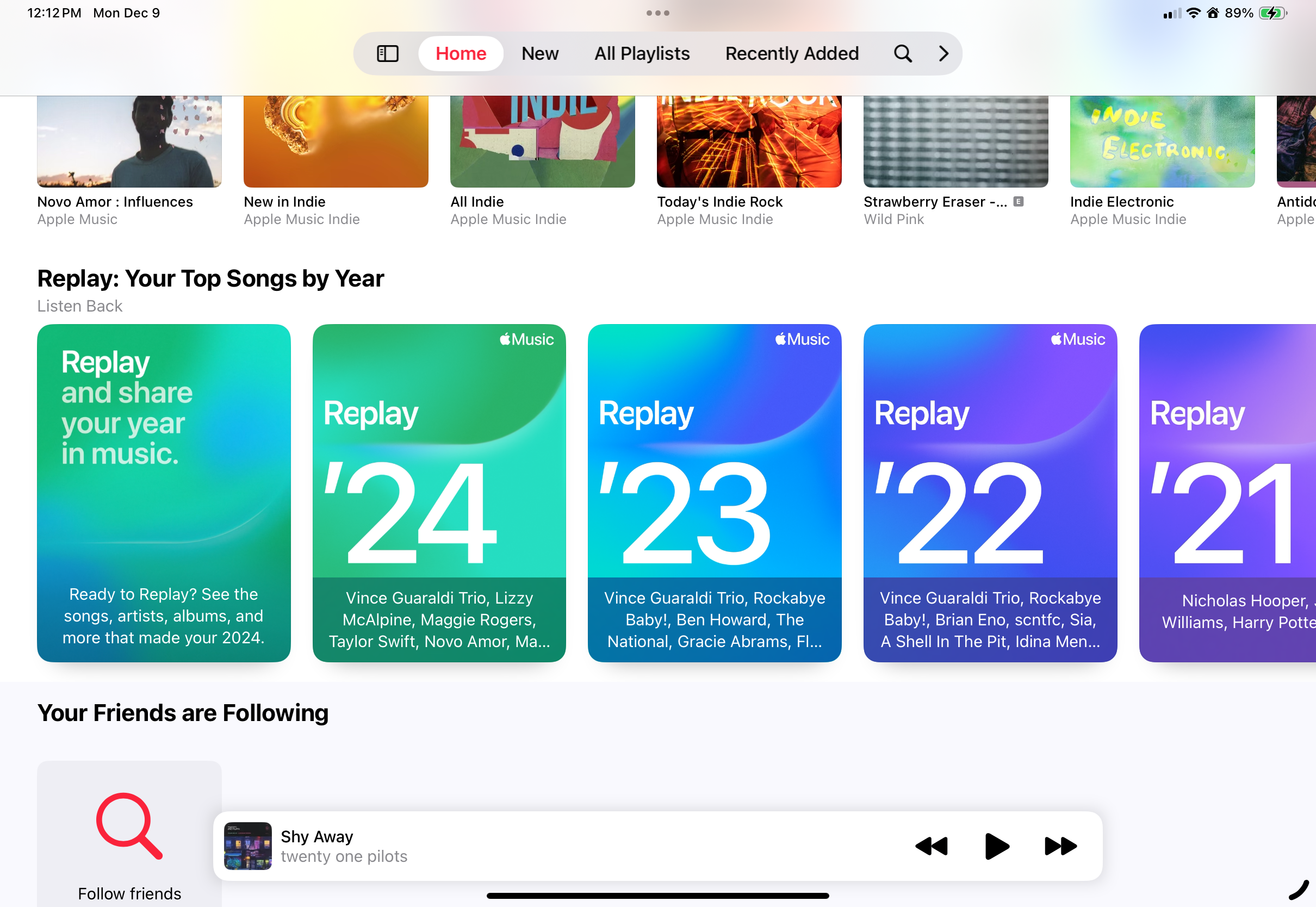 有些音乐服务会等到年底才用有趣的动画来展示你的统计数据。苹果也一样但它也全年提供“重播”歌单和统计数据。在首页底部,您可以找到您订阅以来每年收听次数最多的歌单。